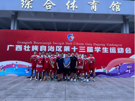 为面贯彻新时代党的教育方针,进一步推进学校体育改革发展,落实立德树人根本任务,深化体教融合,2022年8月15日—24日,⼴⻄壮族⾃治区第⼗三届学⽣运动会篮球⽐赛在广西师范大学正式拉开帷幕。我校分别派出男篮、女篮共计23名运动健儿参赛。