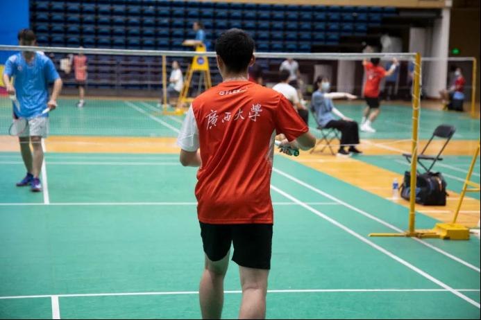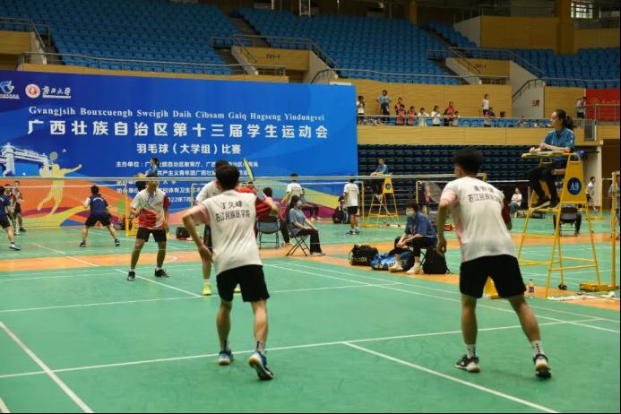 广西第十三届学生运动会羽毛球(大学组)比赛正在进行中