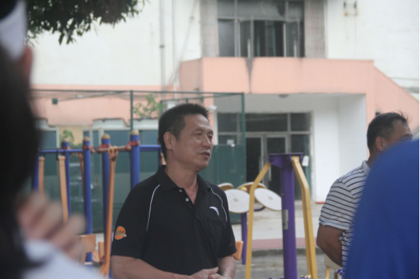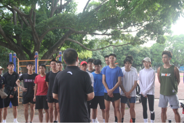 首先视察检查的是田径队的训练情况。在烈日炎炎的下午,田径队的队员们顶着烈阳在跑道上驰骋奔跑,黄小波院长表示田径运动员们在烈日中不怕苦不怕晒的精神值得赞扬,对于训练所需的物资学院也会尽可能提供。