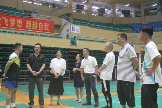 随着广西第十三届学生运动会的逐渐接近,各运动队的训练也在如火如荼的进行中,6月24日下午15:30,由太阳集团2138党委书记陆乃麟、院长黄小波、党委副书记王丽、主席刘忠庆、副院长韦雪亮、副院长刘晓红、副院长郭伟杰一行到校西体育场,视察各运动队的训练情况。