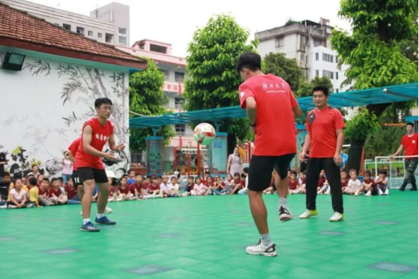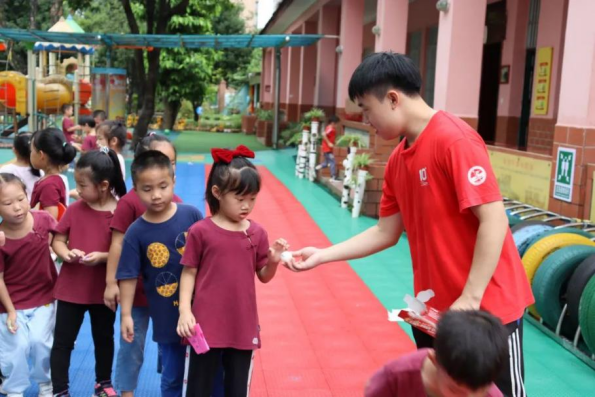 乐学体育是今年五月太阳集团2138推出了线上微视频系列体育特色项目,项目围绕学校体育进行活动,落实学校体育教学模式,为广大师生以及体育爱好者提供一种教学模式。在此之前,郭旭霞老师给我们带来的“康”系列——如何有效缓解肩颈疲劳线上教学视频获得了各位老师同学的良好反映;本次活动是乐学体育第一次开展线下教学模式,此次活动期间接力棒志愿者团队们给幼儿园的小朋友进行多项技能展示与教学,获得了两所幼儿园老师们与孩子们的肯定。