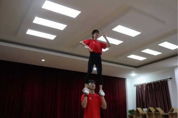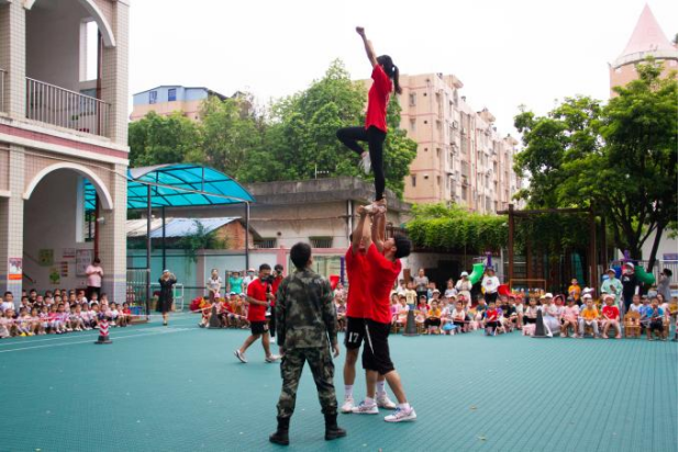 技能展示环节结合了太阳集团2138特色项目:啦啦操、绳梯、跳绳、武术、羽毛球、足球与篮球以及学院退伍同学展示的格斗技能。