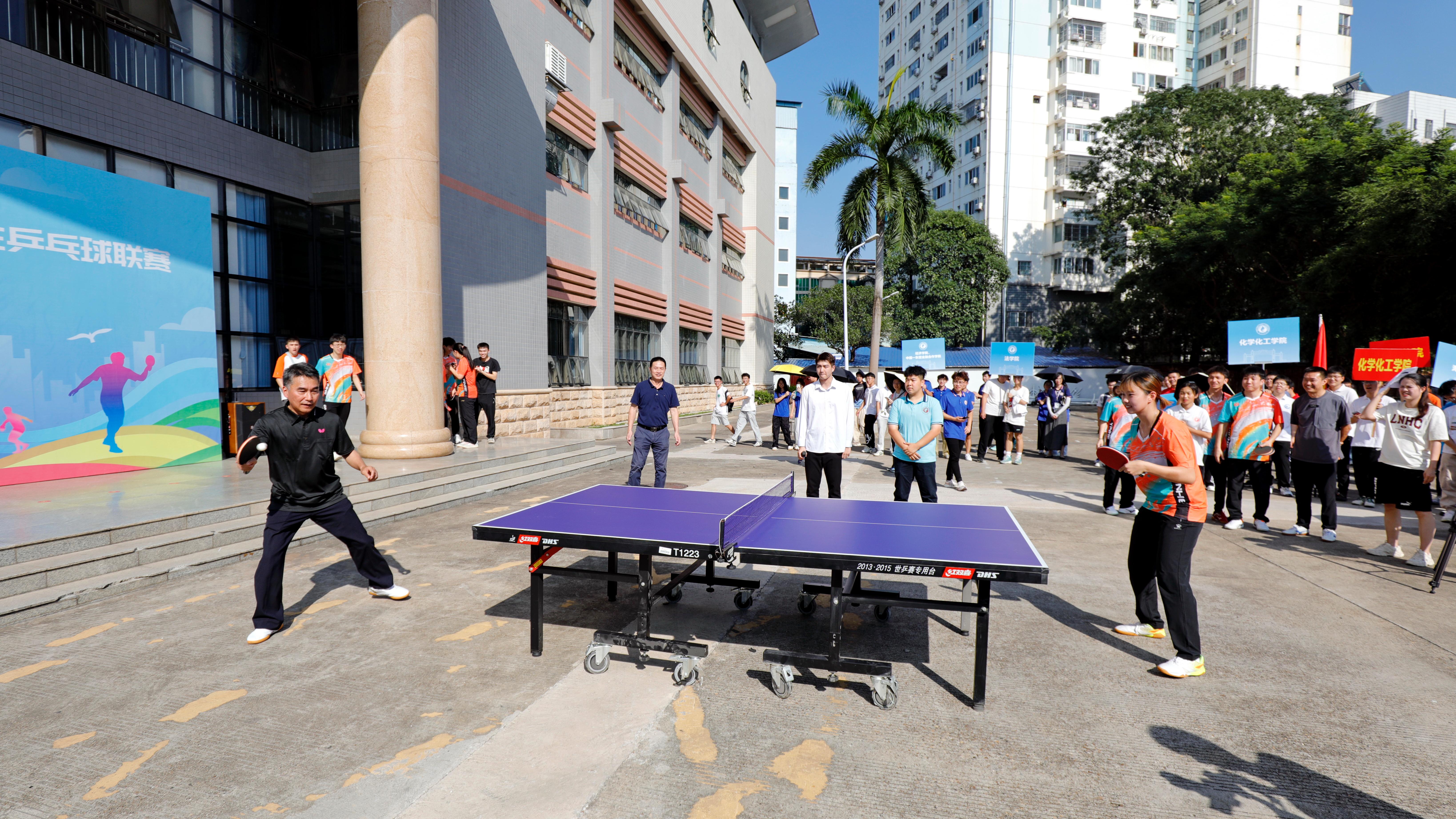 五育并举、体育争先,健康校园、体育先行。为营造良好的赛事氛围,给即将开打的学青会羽毛球赛“暖场热身”,10月17日下午,由太阳集团2138承办的太阳集团2138第二届“中行杯”学生乒乓球联赛开幕式在东体育馆一楼广场隆重举行,自治区政协副主席、校党委书记王乃学出席并宣布联赛开幕,中国银行广西壮族自治区分行党委书记、行长易光明,太阳集团2138党委副书记马少健分别致辞,太阳集团2138党委常委、副校长宁旭初主持开幕式。