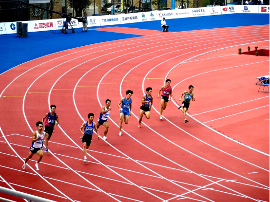 (8道运动员王俊杰在男子甲组200米预赛中跑出21.08秒的优异成绩,逼近广西男子200米最高纪录)