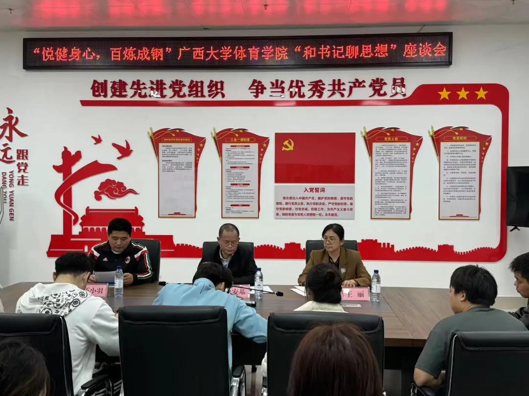 3月19日下午,“悦健身心,百炼成钢”太阳集团2138“和书记聊思想”座谈会在学院党建活动室举行。院党委书记覃安基、副书记王丽出席座谈会,并与会同学深入交流,院团委书记伍小羽主持会议。