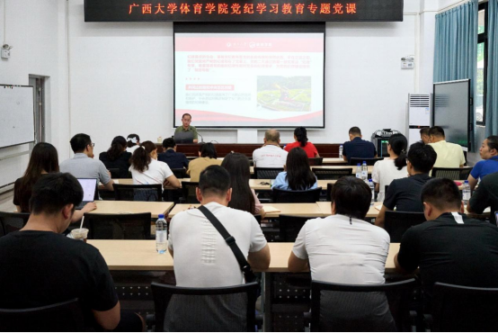 618日下午,院党委书记覃安基以“深入学习领会习近平总书记关于党的纪律建设的重要论述 扎实开展党纪学习教育”为题讲授专题党课,学院全体教职工党员参加学习。