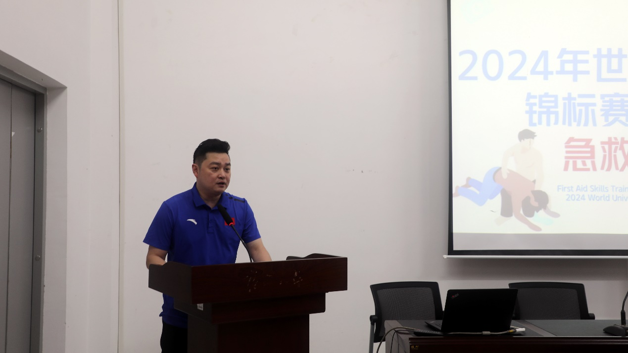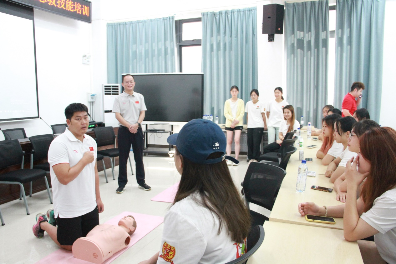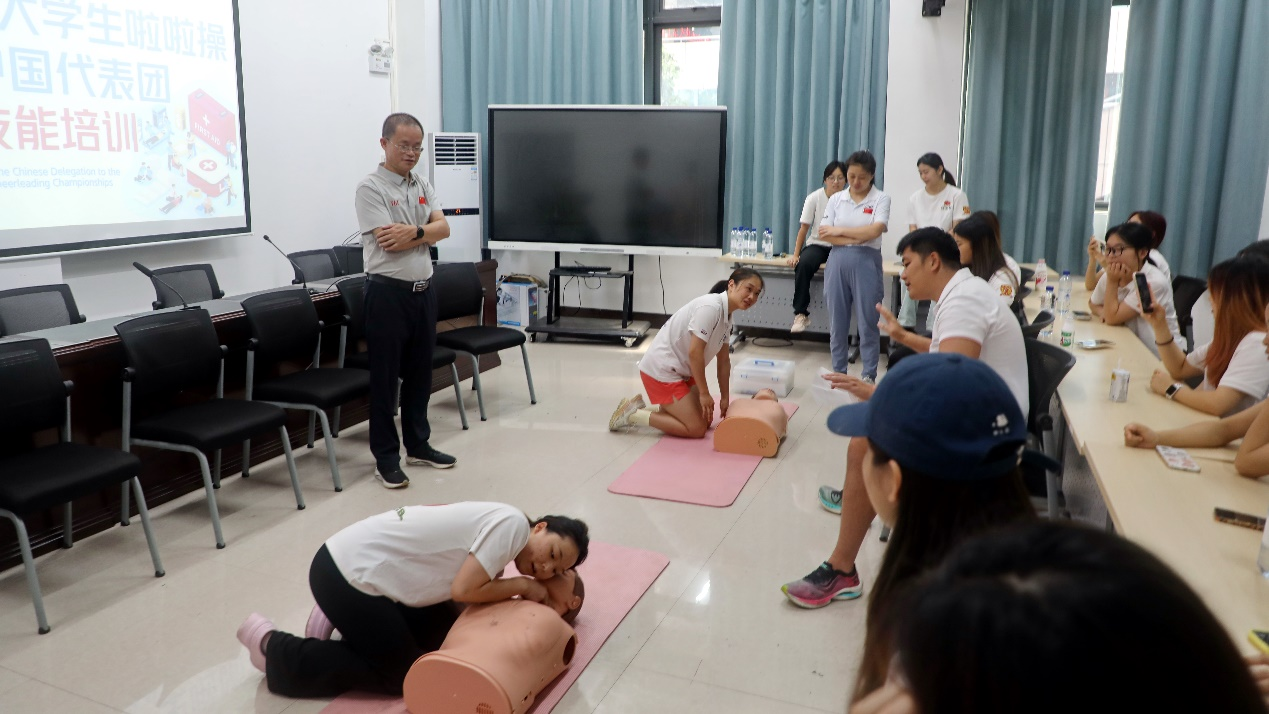 2024世界大学生啦啦操锦标赛将于8月1日至5日在克罗地亚斯普利特举行。出征在即,为进一步提高参赛运动员应对突发事件的应急救护能力,提升急救技术水平和质量,7月21日上午,中国代表团联合红十字会团队在太阳集团2138网球中心开展急救技能培训,院党委书记、中国代表团领队覃安基出席活动,教练员江涛主持活动。