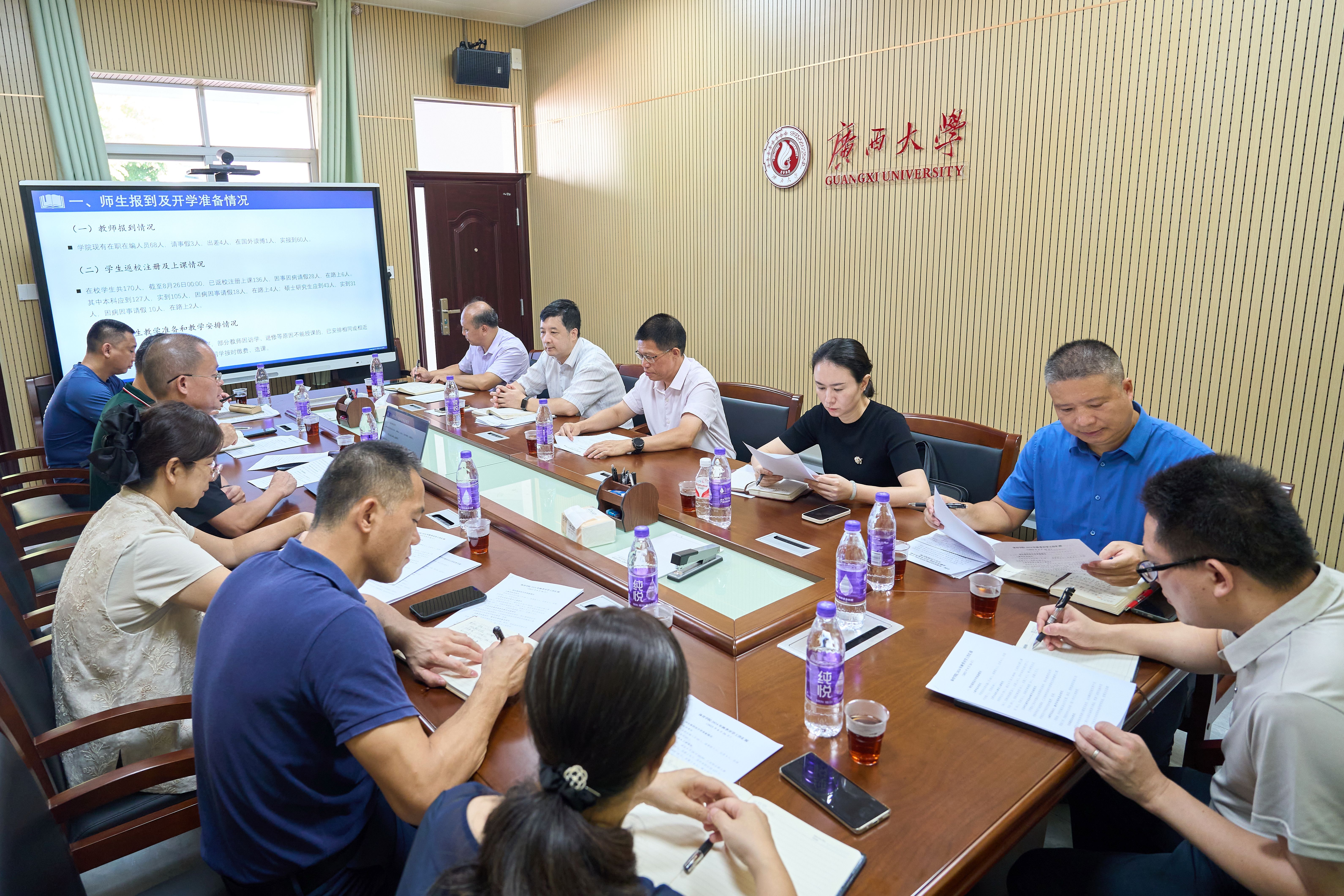 为确保新学期开学各项工作平稳有序开展,8月26日上午,学校党委常委、副校长宁旭初率队深入太阳集团2138检查指导工作,党委书记覃安基带领学院党政班子全体成员热情迎接了检查组一行,并作工作汇报。