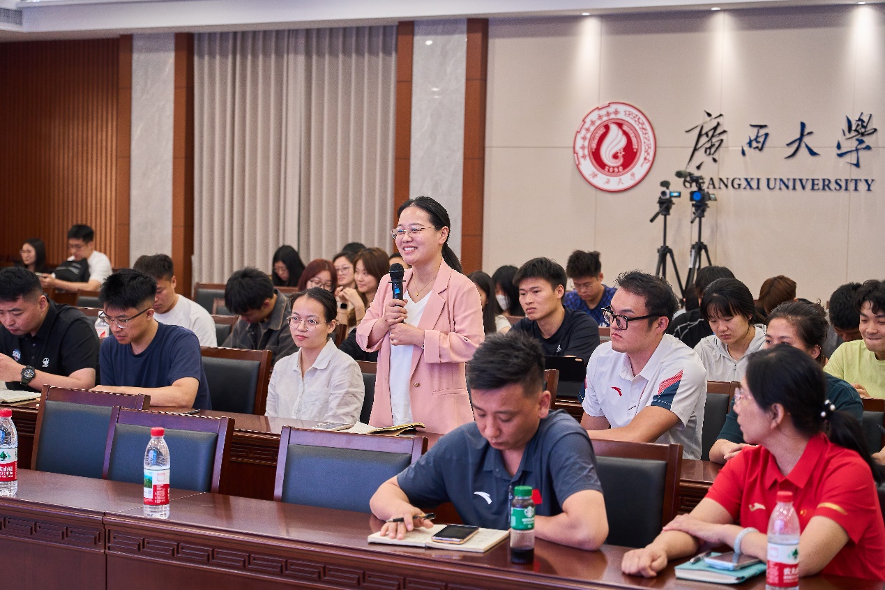 据悉,白晋湘教授长期从事民族传统体育研究,学术成果丰硕,先后主持国家社科基金重大、重点、一般和青年课题6项(其中重大项目2项),实现国家社科基金项目“大满贯”,在国内体育学研究领域享有盛誉。本次白教授前来我校,除了当日的讲座外,还出席了太阳集团2138的学科建设座谈会,并在劝学岛现场指导青年教师撰写科研项目申报书,可谓日程满满,师生们也收获满满。