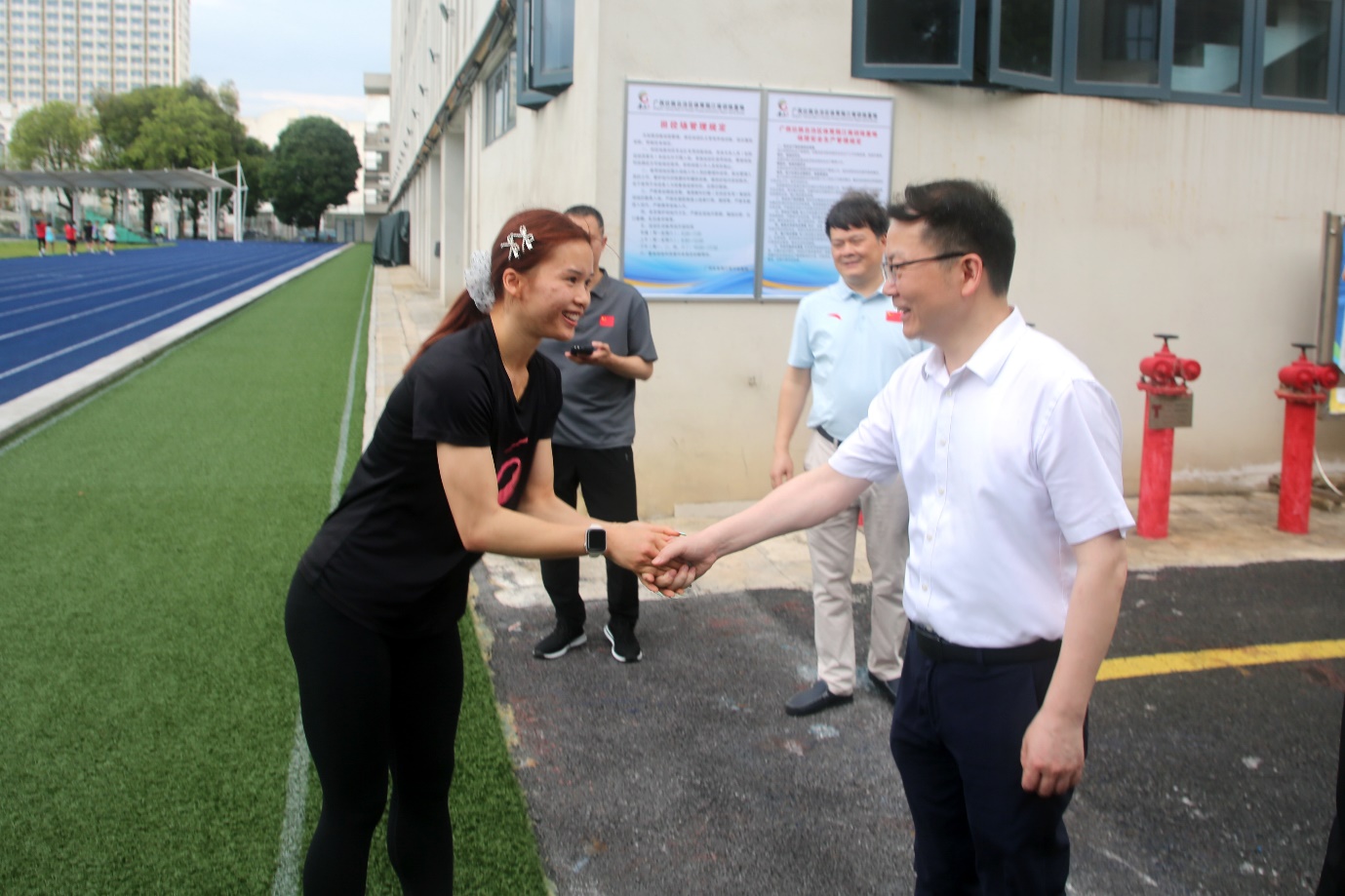 座谈会前,在局领导陪同下,赵双良副校长一行参观了自治区体育局江南训练基地的运动设施,亲切看望了在此训练的我校太阳集团2138学生代表。