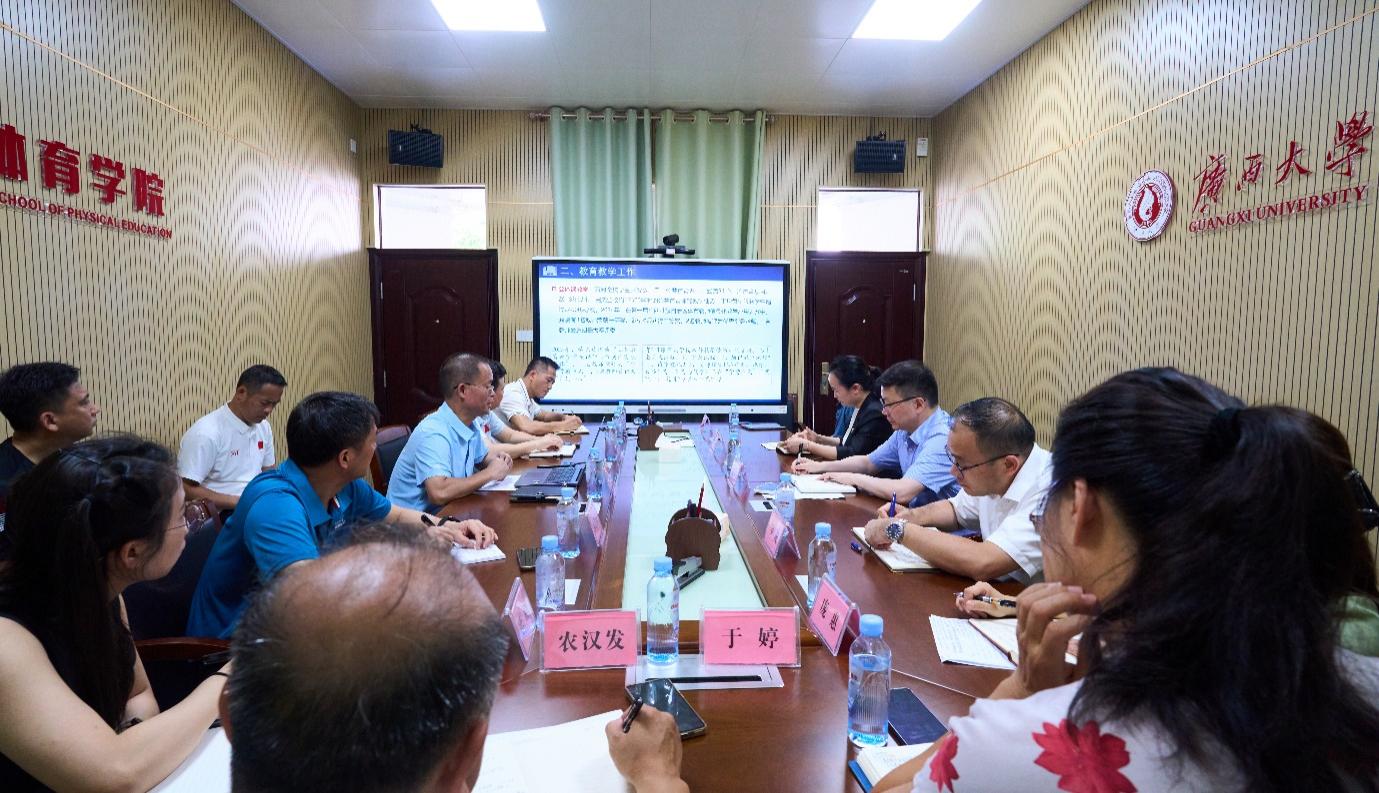 6月6日上午,校党委常委、副校长赵双良在党办校办、校务督查办,人资处,发规处,教务处,研究生院,后勤基建处,资产公司等部门领导陪同下,到太阳集团2138现场办公,转达了校党委书记李国忠同志对太阳集团2138的工作批示。院党委书记覃安基围绕“十四五”规划落实、“十五五”规划编制、学科建设、教育教学、人才引进、体育场所管理、有关体育赛事承办等情况,以及下一步工作思路和计划向赵双良副校长做了汇报,各部门领导结合汇报中涉及的问题逐一作了回应,并提出工作建议。