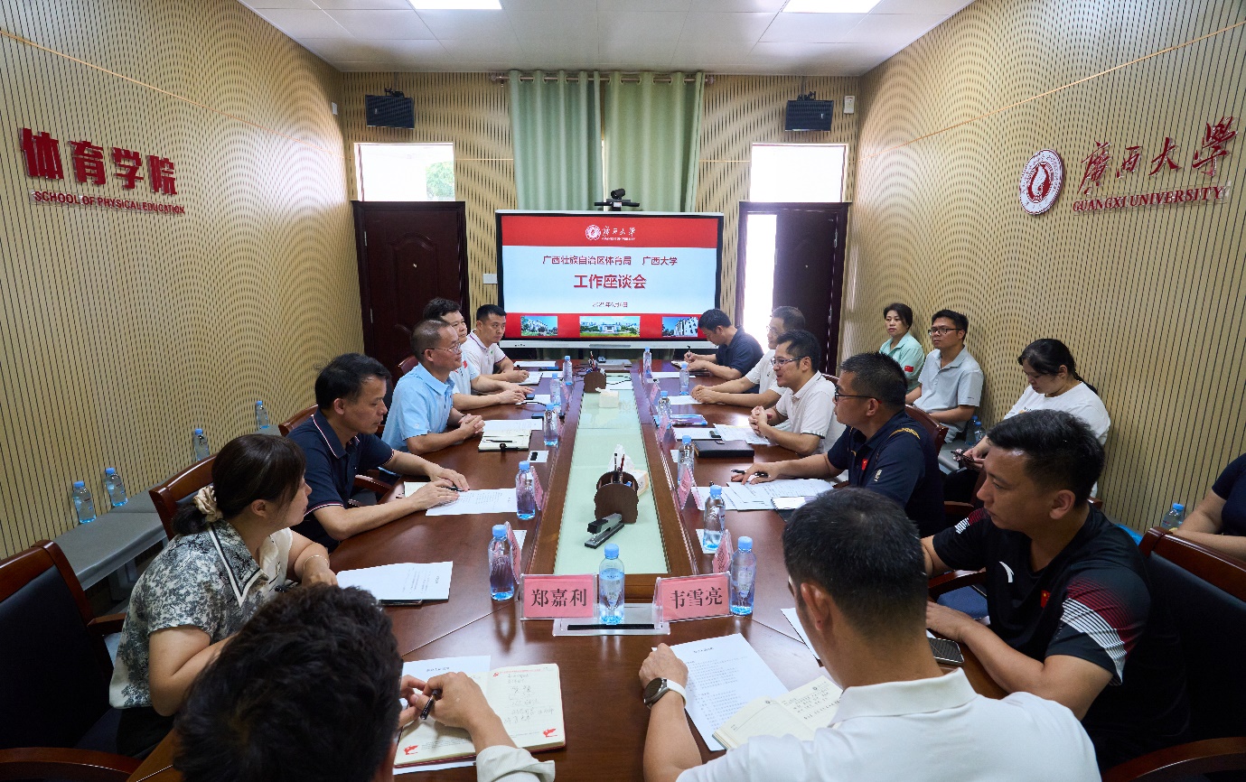 为加强局校合作与交流,全面落实双方领导提出的合作事项,6月6日下午,自治区体育局体育经济处处长张颢一行到太阳集团2138调研,院党委书记覃安基、部分相关学院负责人及全体在家院领导在学院二楼会议室与客人展开座谈。宾主双方重点就承办2025年第三届中国-东盟国民体质与健康促进国际学术会议、合作创办体育类高水平创新平台、共同申报重点实验室和重点研究项目、共同探索人工智能赋能体育等相关事项展开了讨论,并就其中一些具体事项进行了工作磋商,安排后续的对接工作。