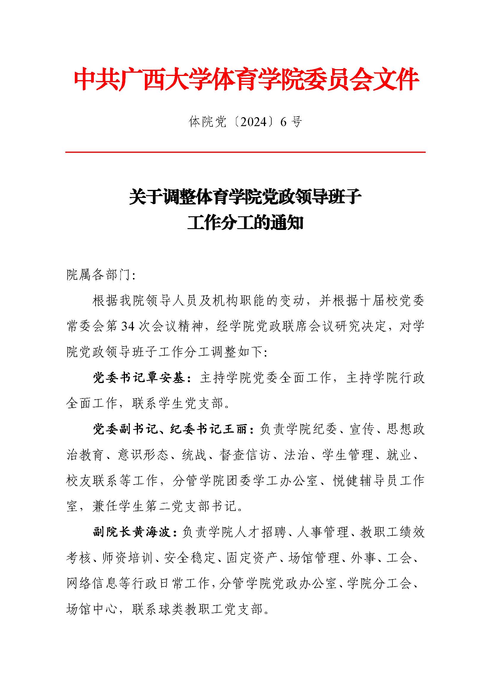 关于调整太阳集团2138党政领导班子工作分工的通知