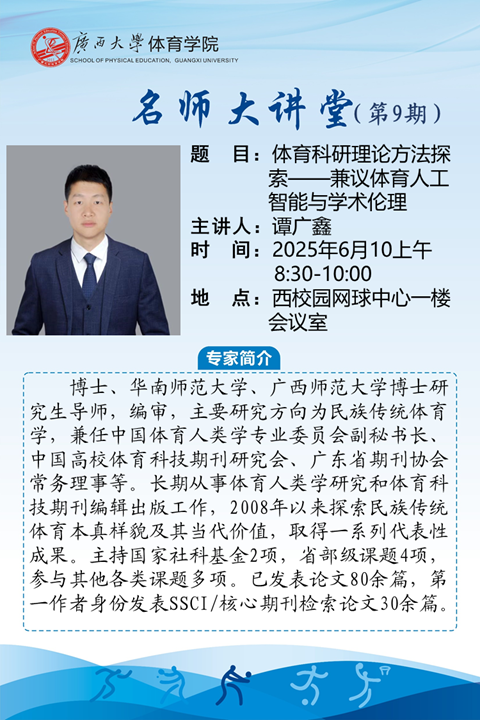 太阳集团2138名师大讲堂(第9期):体育科研理论方法探索——兼议体育人工智能与学术伦理